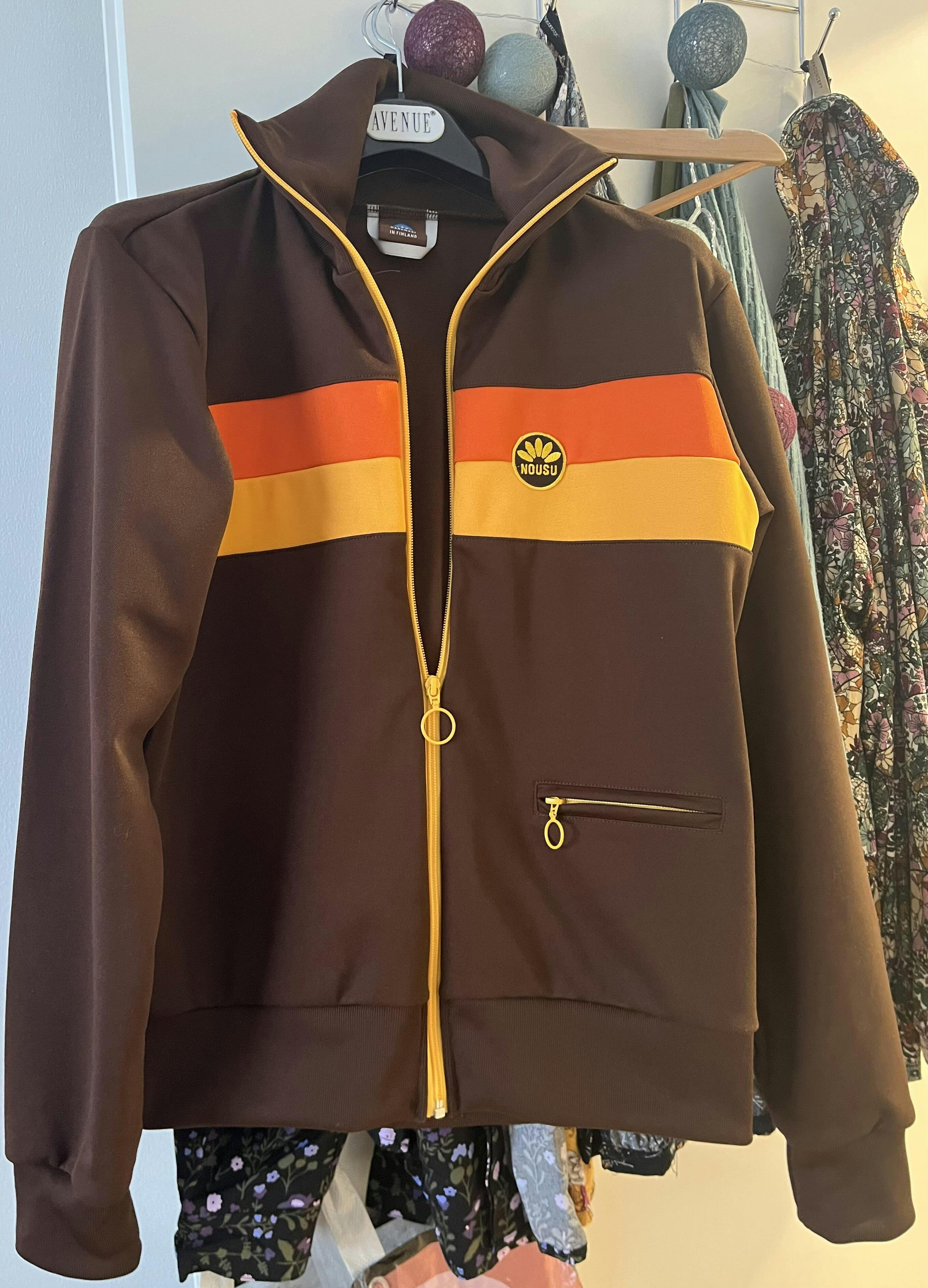 "Verryttelytakki soveltuu erinomaisesti verryttelyyn eli toimintaan, joka saa veren kiertämään. Ja koska veren tulee kiertää koko ajan ja jokapaikassa, sopii Nousun verkkatakki kaikkiin tilanteisiin. Istuvaksi kaavoitettu, laadukkaista materiaaleista huolellisesti ommeltu takki on monikäyttöinen ja se kestää käyttöä. Se on suomalaista käsityötä alusta loppuun, joten myös valmistus on kestävällä pohjalla. Nousun sydän sykkii Suomelle."